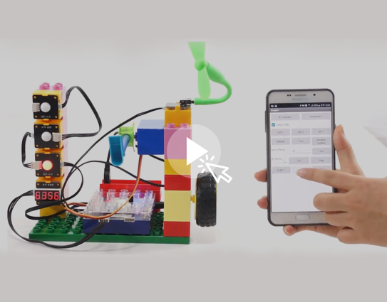 コブルは、ブロック形式の製品です。数多くのセンサーや様々な部品などをブロックで組立てる方式ですので、誰でも簡単に多彩な創作ができる製品です。